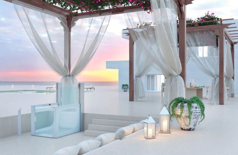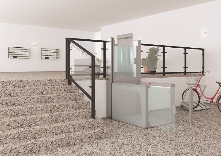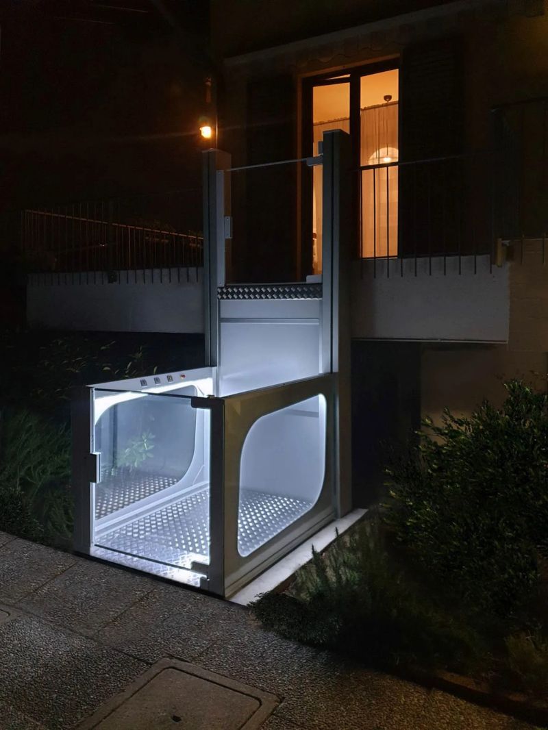 EasyPlat е проектирана с мисъл за дискретност и стил. Благодарение на елегантните си линии и стъклени панели, тя се интегрира перфектно в съществуващата архитектура, без да създава усещане за натрапчиво медицинско оборудване. Ключово предимство е, че платформата не изисква изграждането на шахта или вкопана яма. Монтажът е бърз, чист и с минимална намеса върху сградата, а вградената рампа за достъп осигурява плавно и лесно качване и слизане.