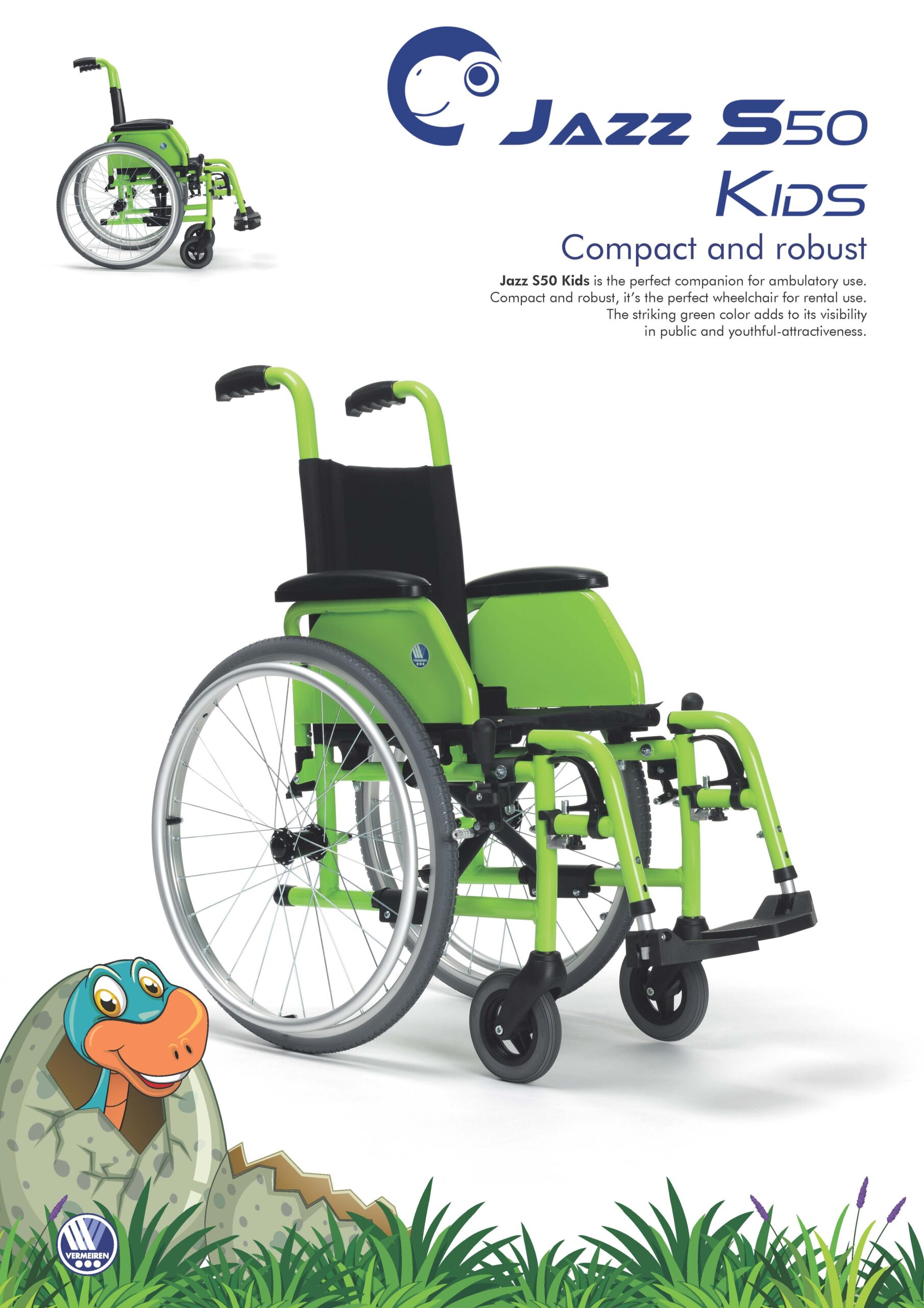 Детската инвалидна количка Vermeiren Jazz S50 Kids е специално създадена, за да отговори на динамичните нужди на децата.